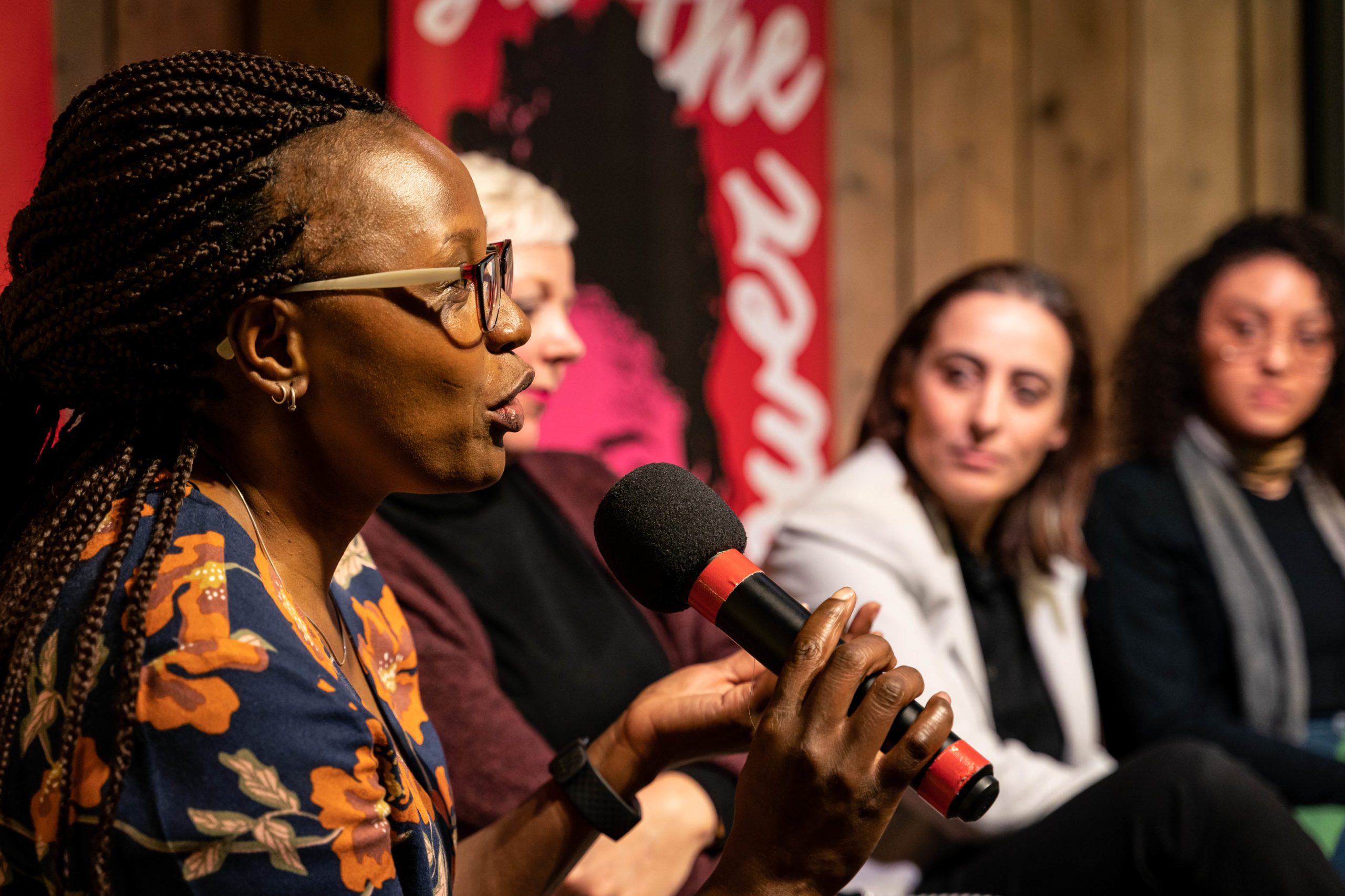 Daarna volgt een levendig panelgesprek met Tweede Kamerlid Kirsten van den Hul (PvdA), Lucy Mung’ala (Hivos), Gina Lafour (Stem op een Vrouw), Augustina Austin (singer-songwriter en ondernemer met Ghaneese roots) en Laury Haytayan. Met “fuck the patriarchy!” zet Kirsten van den Hul de toon voor het gesprek. Er wordt gediscussieerd over rolmodellen en verantwoordelijkheden, politieke participatie en inclusie van LHBTQ’s.