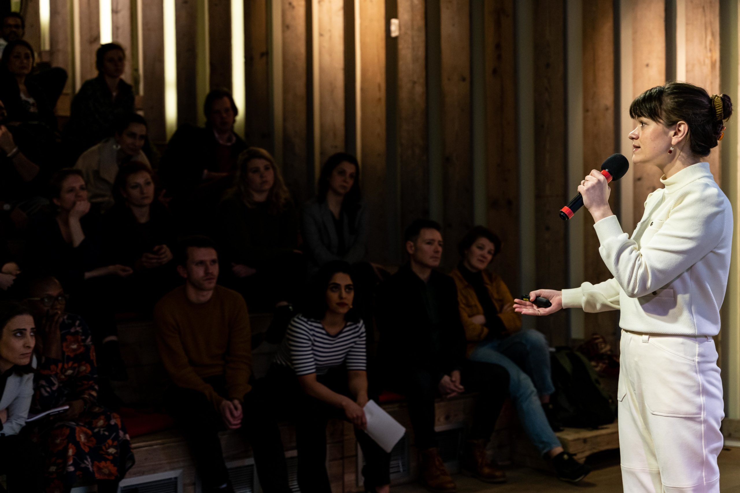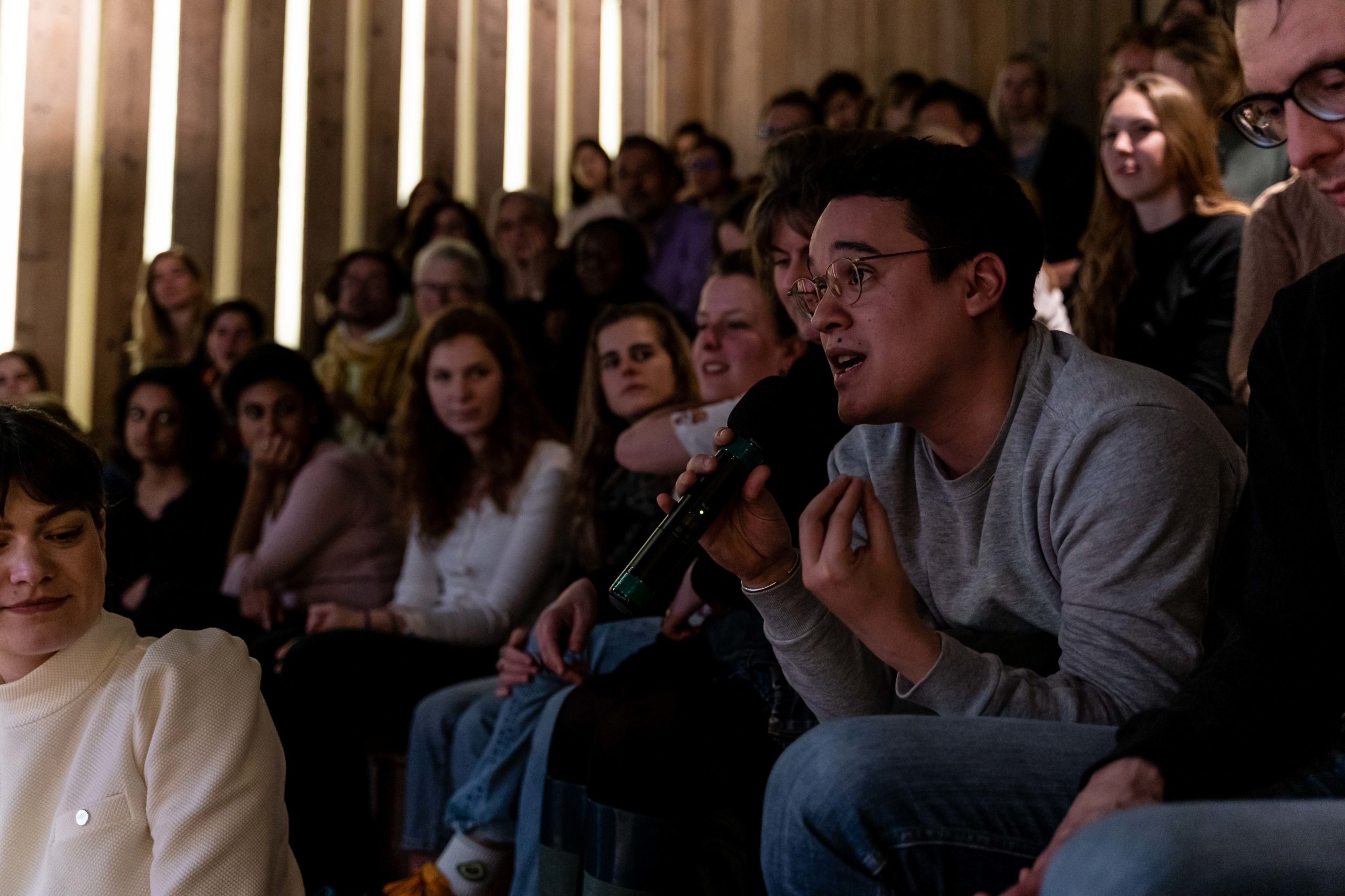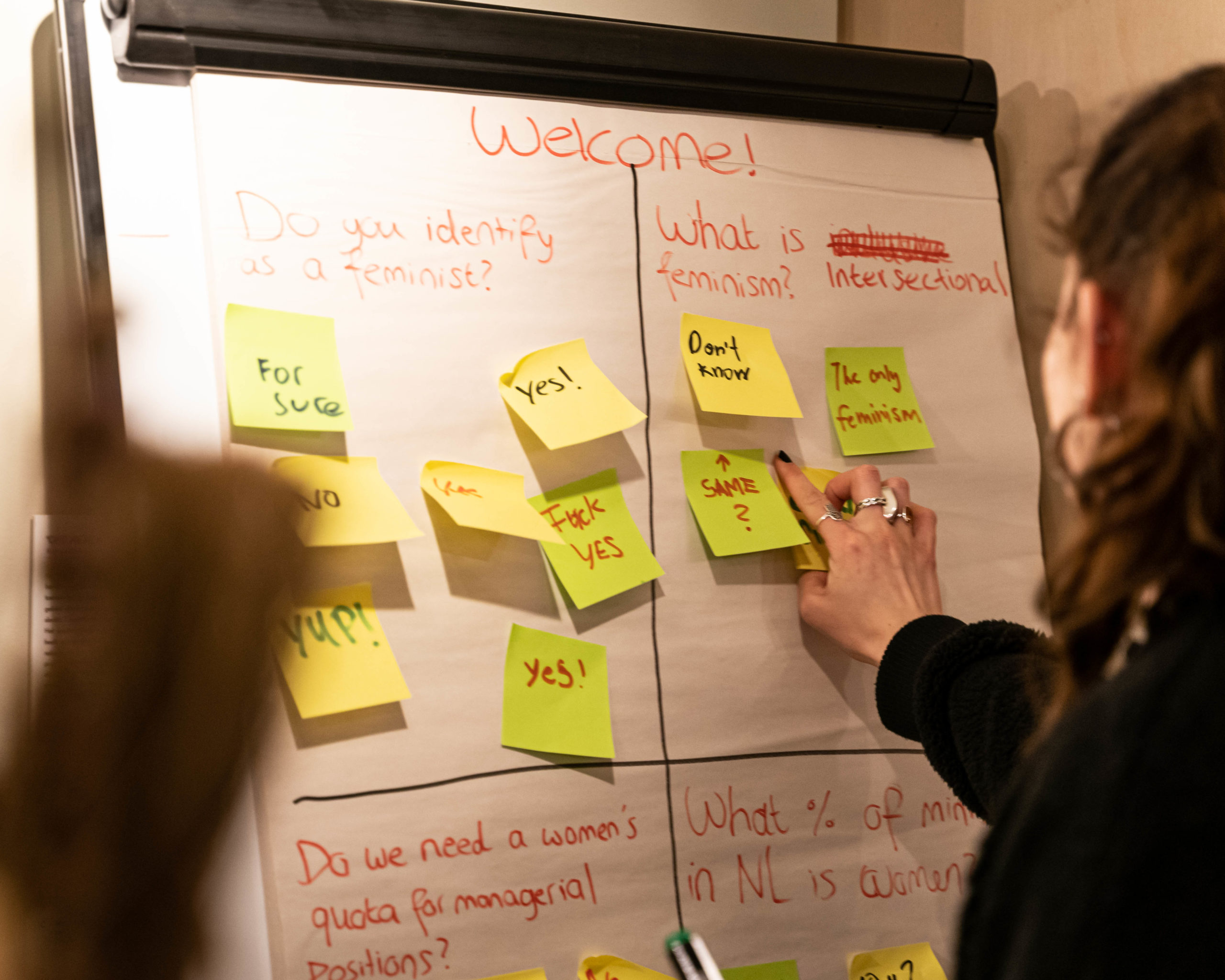 “Wie noemt zichzelf een feminist?” vraagt Sahar Shirzad, moderator en gastvrouw, aan een bomvolle zaal bij de aftrap van het evenement. In het publiek schieten de handen de lucht in, en niet alleen van vrouwen. Gelijkgestemden uit Den Haag en omgeving zijn bij elkaar gekomen om zich te laten inspireren door persoonlijke verhalen, discussie en muziek.